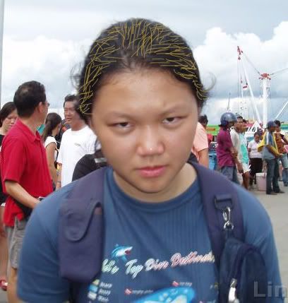 Ka sent me a photo of herself...But...*ahem*she tried to dye her hair to dirty blonde...But she make it like streaks of em...it's like all over and I can't get rid of it...So she sent me that photo and I sey help her try to "dye" her hair...