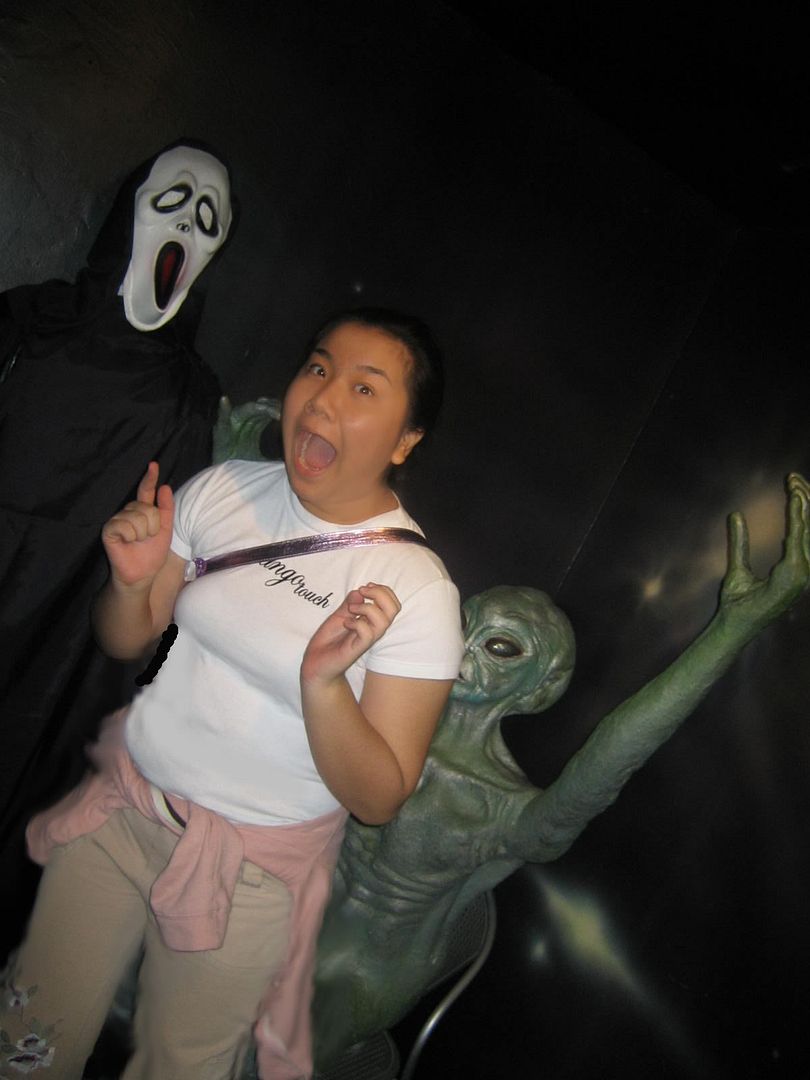 Erm....Some scary thingy I was trying to pretend to be but failed??In Baiyoke Tower, an 86 stories high building...Was damn scared when we were up there at the top....And